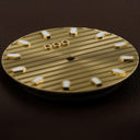 LUNETTA: bronzo marino lucido, inserto satinato con guilloché, indice a ore 12 applicato