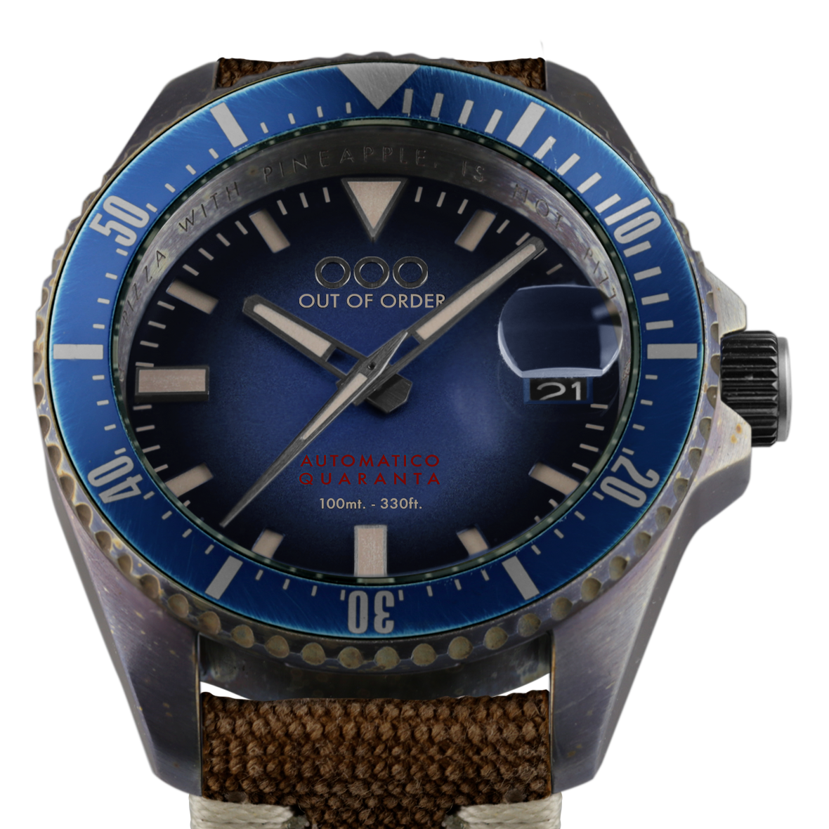 - CASE: Stainless Steel solid 316L with "OOO® exclusive aging process" with aluminum OOO® hand-brushed bi-directional turning bezel;