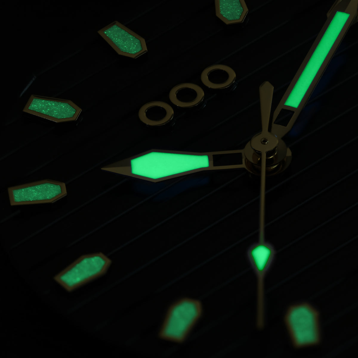 As lights go down, the dial tells a second story: applied indexes and hands bloom in