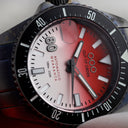 The “Sunset” dial, with shades from red to white, pays homage to the Indonesian flag: red symbolizes courage, white purity.