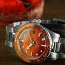 DIAL Double-layer matte dial, nuanced from light to dark orange, applied indexes with Superluminova® insert, double printed logo and specifications