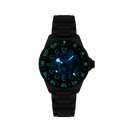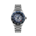 INDEXES AND HANDS: 316L stainless steel matte blue IP with Superluminova® C3, red GMT hand with BGW9 Superluminova®