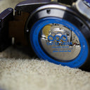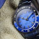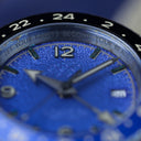 A flat sapphire crystal safeguards the deep blue dial, chosen to symbolize the vastness of the ocean. For visibility in low light, SuperLumiNova C3 is applied to the index profiles, Arabic numerals, and bidirectional rotating bezel.